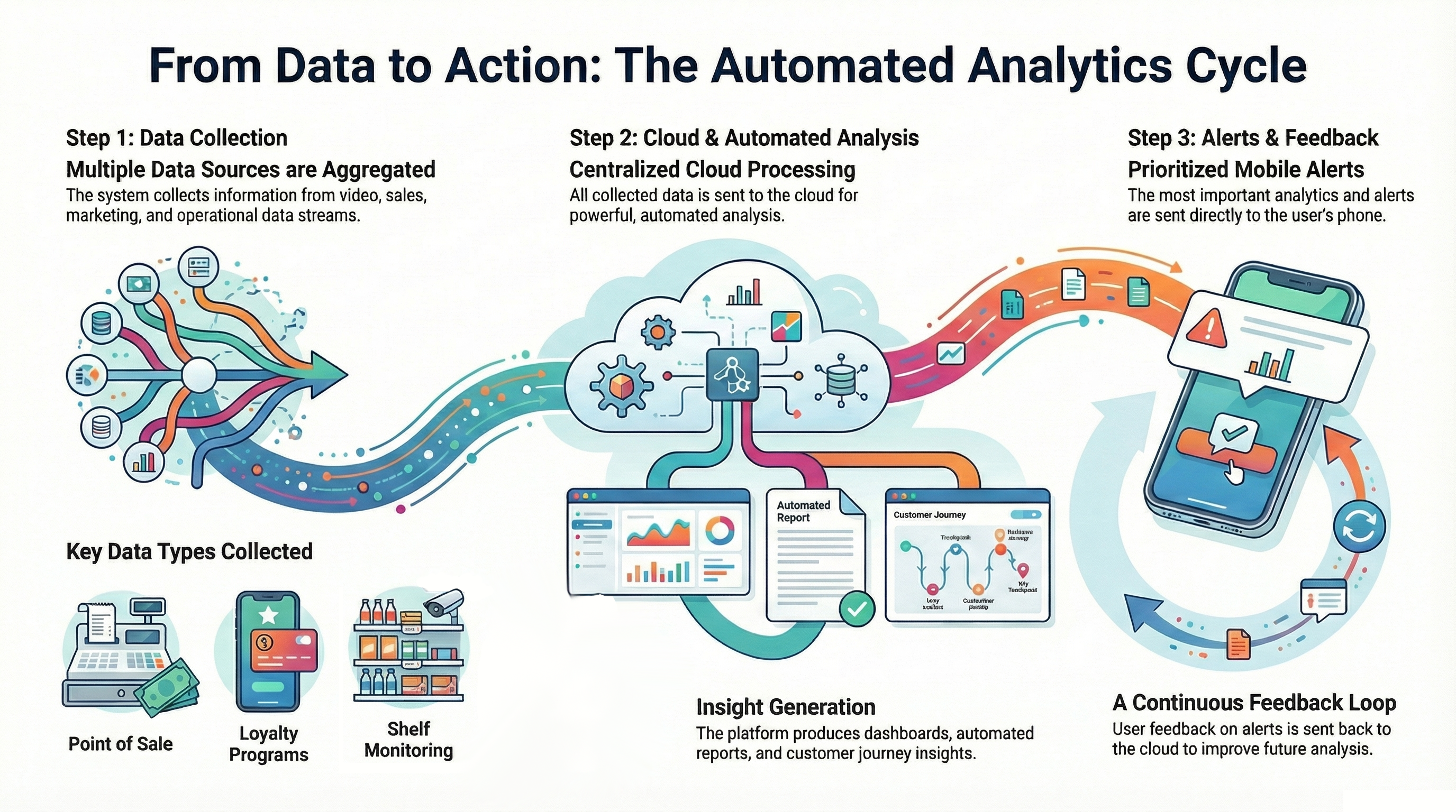 AI-powered video analytics that increase sales and reduce losses—using cameras you already have. Video never leaves your store.